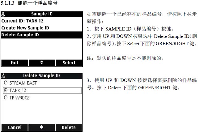 5.2.4 刪除數據 30 5.3 傳輸數據 31 5.3.1 傳輸數據選項 31 5.3.1.1 選擇打印報告的類型 31 5.3.1.2 在數據文件中包含欄目頭 32 5.3.2 將數據發送到打印機 33 5.3.3 將數據發送到閃存裝置 33 5.3.4 使用 HQd PC 應用軟件將數據發送到計算機 34 5.3.5 發送電極校準數據 35 5.4 查看打印出來的數據日志報告 36 5.4.1 報告的名稱 36 5.4.2 樣品的結果 36 5.4.2.1 基本報告 36 5.4.2.2 復雜報告 37 5.4.2.3 總報告 37 5.4.3 校準結果 38 5.4.4 檢查標準的結果 39 5.5 查看打印出來的校準報告 40 5.5.1 當前的校準報告 40 5.5.2 校準歷史報告 41 5.6 查看下載的數據文件 42 5.7 存檔并交換用戶的方法 45 第六章 pH 值的操作和方法 47 6.1 校準 pH 電極 47 6.1.1 校準錯誤 48 6.1.1.1 不能識別標準 48 6.1.1.2 斜率錯誤 48 6.2 進行 pH 值測量 49 6.3 運行檢查標準 49 6.3.1 自動檢查標準或定期檢查標準 49 6.3.2 測量檢查標準 50 6.3.3 延遲檢查標準 51 6.4 設定 pH 方法 51 6.5 修改當前的方法菜單 6.5.1 修改 pH 方法 6.5.2 修改 pH 值測量的選項 6.5.3 修改 pH 值校準的選項 6.5.4 修改 pH 值檢查標準的選項 6.5.4.1 選擇檢查標準的緩沖液 6.5.4.2 使用定制的檢查標準 6.5.4.3 編輯檢查標準提示器選項 6.5.4.4 編輯檢查標準認可的準則 6.5.5 修改 pH 值測量單位 |