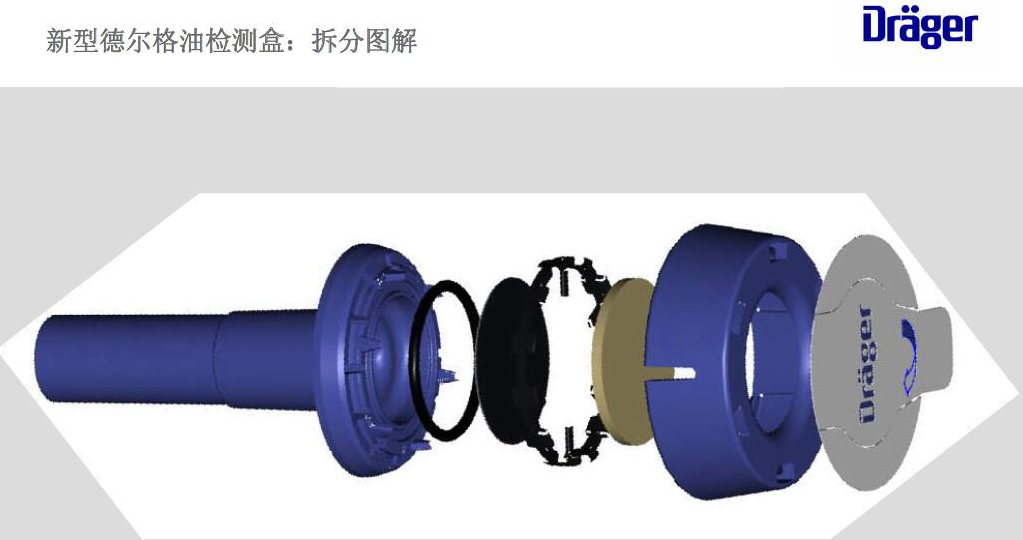 只能使用德爾格原裝配件連接至氣源壓力管線。5分鐘測量完成之后揭開油檢測盒表層的保護膜,應確保徹底將油檢測盒推入油盒適配器8103557里面并檢查是否正確安裝。